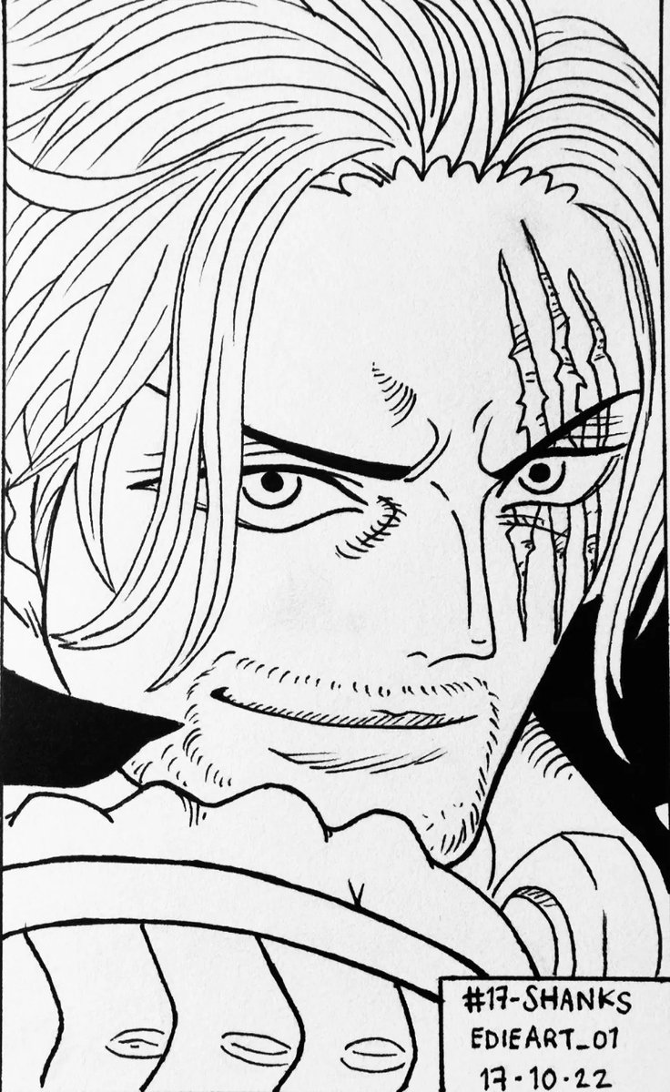 ARTOBER DÍA 18 #SHANKS "Te entrego este sombrero , es muy preciado para mí, cuídalo bien! Ven y regresamelo una vez que te hayas convertido en un gran pirata." #anime #onepiece #manga #artober #inktober #artober2022 #inktober2022 #dibujo #animedrawing #mangadrawing