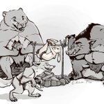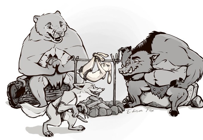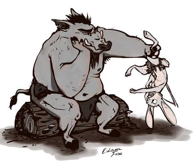 #Zinktober2019 Day 8 -- Frail You show him, Scuppie! #Inktober2019 #inktoberday8 #frail #bunny #boar #furry #Zootopia #cavemen #neolithic