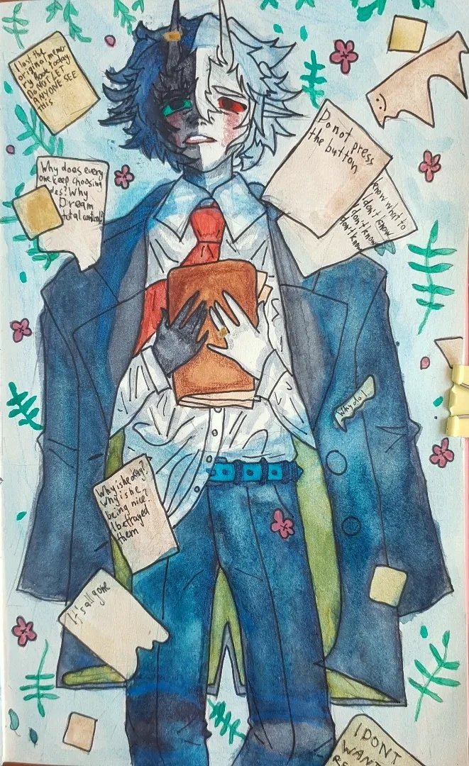 Congrats on 2k @feminetomboy! That was really fun to draw :) [#journalentryDTIYS #ranboo #ranboofanart]