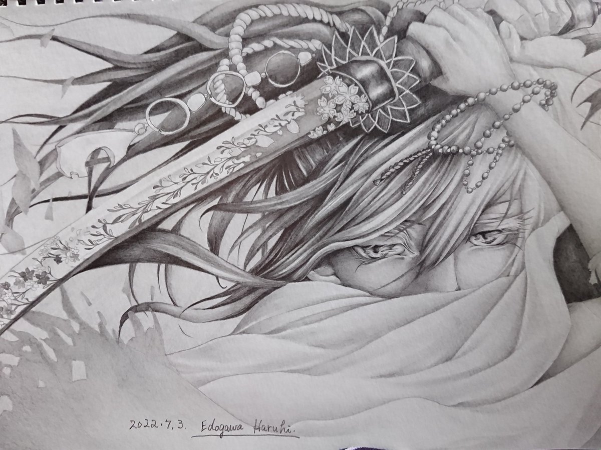 【我が愛しき者ー乱心ー】 入り込みすぎて描き込みすぎたので一部隠しつつ😋💦 漢字もちょいちょいミスw #イラスト #ペン画 #創作