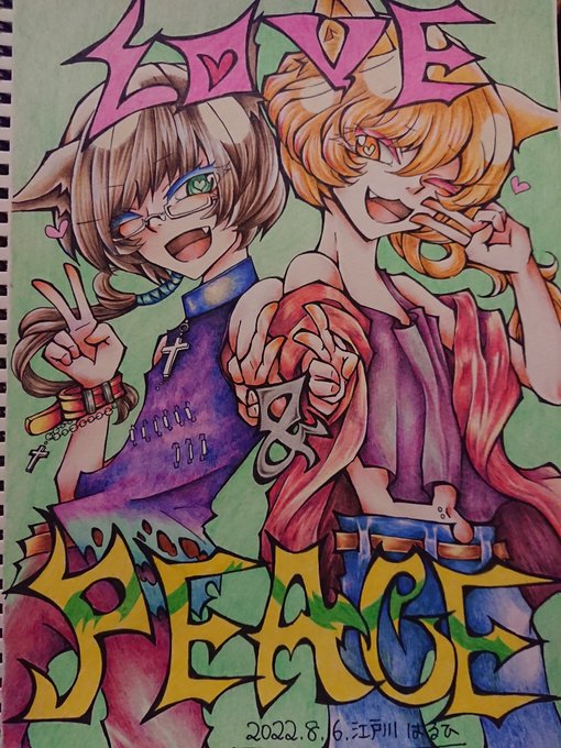 Love and peace.🤗💕 心に愛と平和をお届けしたい👓✨ #色鉛筆イラスト #オリジナル