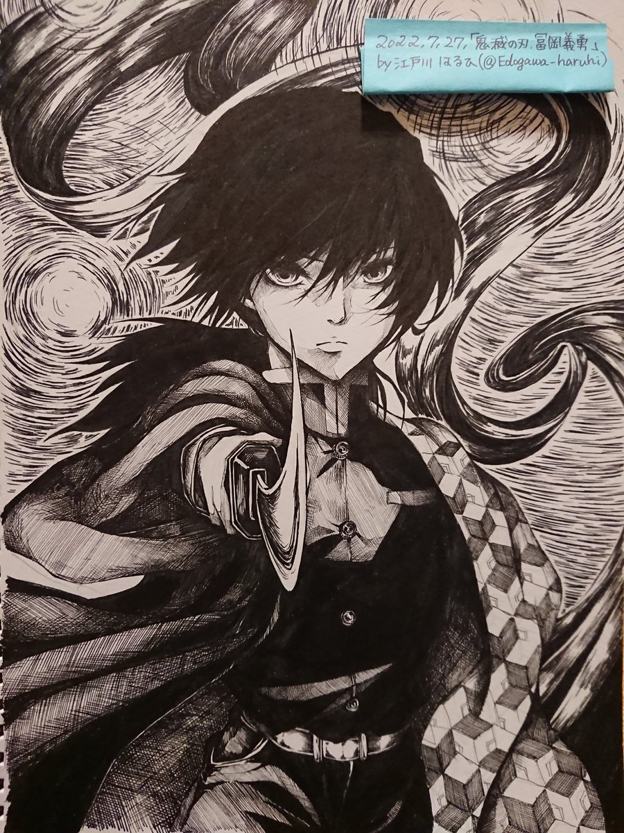 義勇さん👓✨ 初めて描いてみて思ったことは、羽織が結構複雑な模様してるんだなぁ🤔でした。 #鬼滅の刃イラスト #冨岡義勇 #ペン画