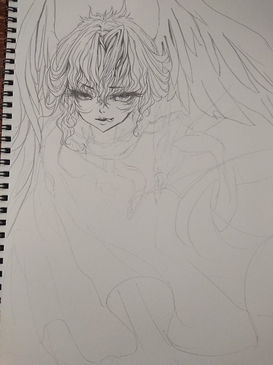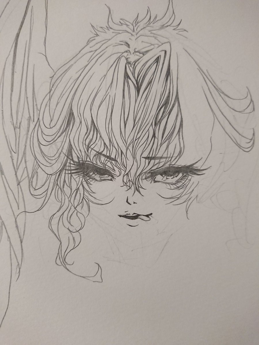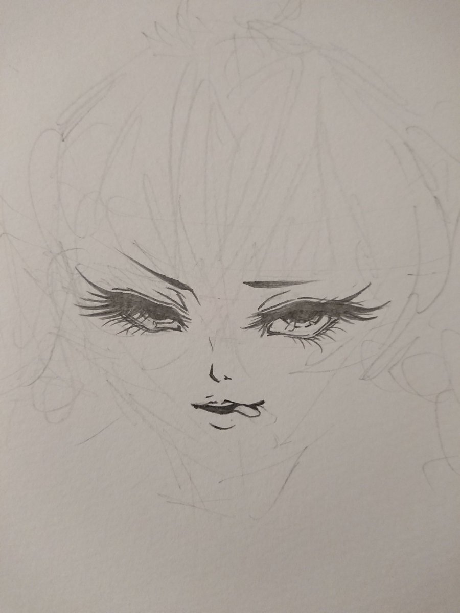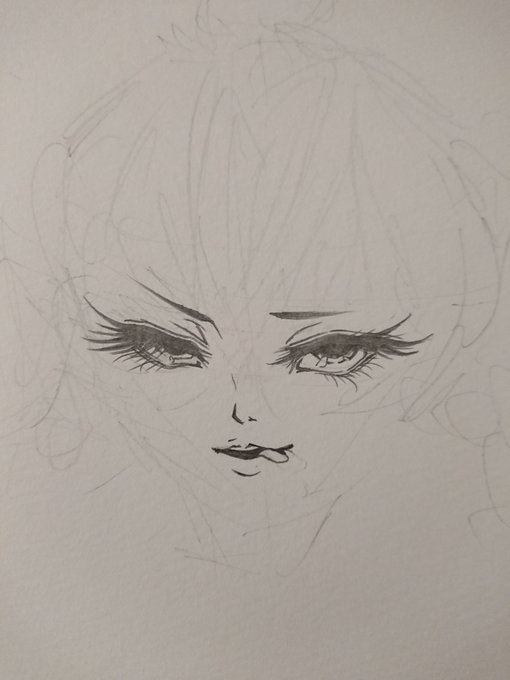 力尽きたので、これはこれでおしまいw😋 下書きがあってもなくても、目から描くのが好きです。そのせいでバランスがあれなんだよってツッコまれたこともあるけど、どうなんでしょうね? 目で語れる絵を描きたい気持ちです😊 #イラスト #ラフ画