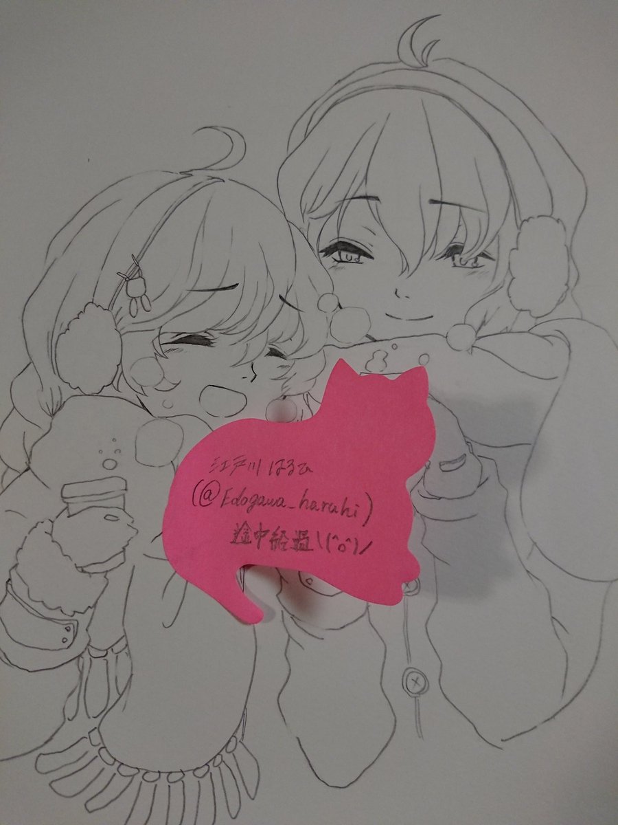 6 30 バレンタインだからね😊 ラフ画なら、ちまちま載せられそうだなと思ってるとこなのですが、この絵は色着けてみたい気もする🎨 ペン入れ時にパメちんのタックル回避できるかなぁ、そこが問題だw #途中経過 #イラスト 23/02/07 00:36