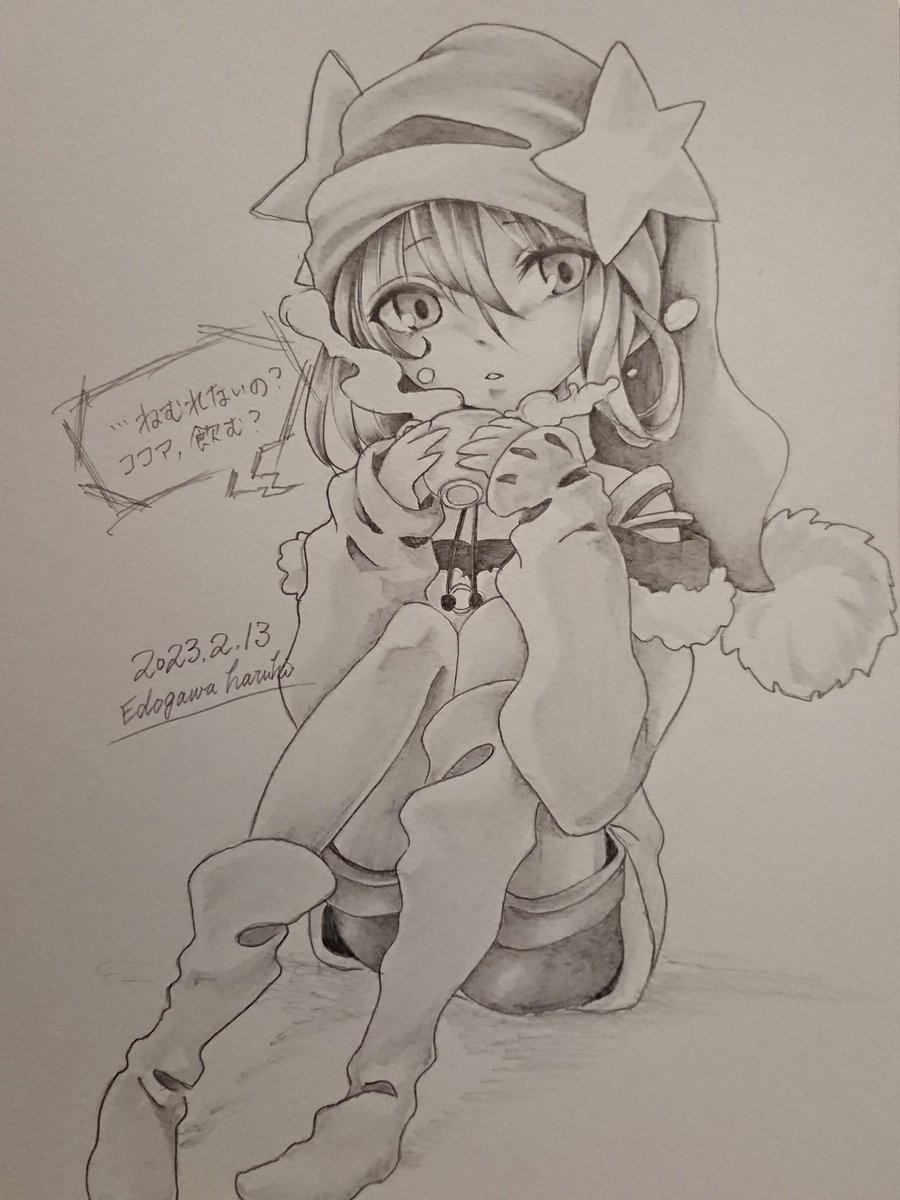 19 110 ココアがないときはミルクとチョコを一緒にたべて飲んだつもりになったりしますが、やっぱりココアのが落ち着く気がする😊 良い時間なので、おやすみなさい(。-ω-)zzz 皆様も、よい夢を🌙 #イラスト #オリジナル 23/02/13 00:38