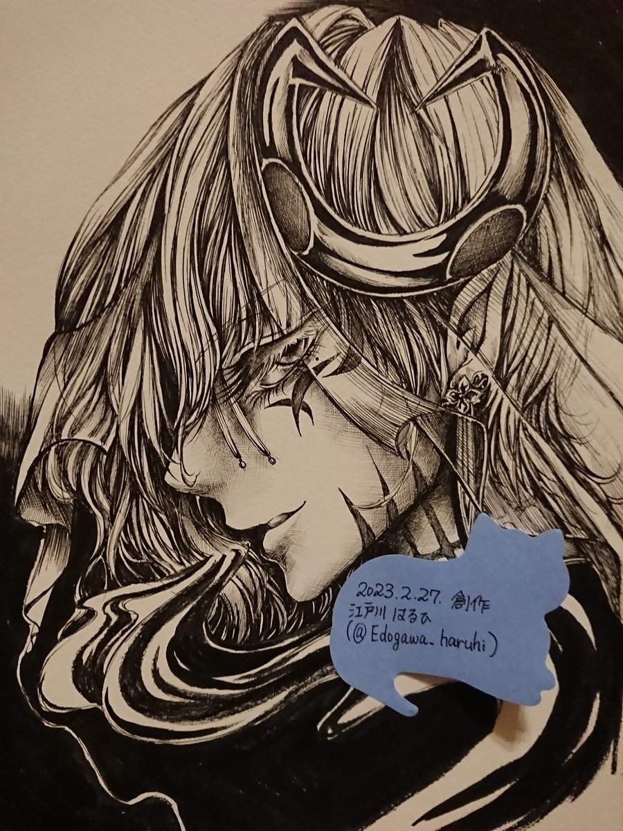23 131 【我が愛しき者ー乱心ー】 入り込みすぎて描き込みすぎたので一部隠しつつ😋💦 漢字もちょいちょいミスw #イラスト #ペン画 #創作 23/03/02 00:35