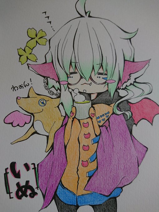 うちの、いぬのえ君のイメージイラストを簡単にですが描いたので、こっそり載せておいちゃお😋 動画で犬族ですから~て言ってたの忘れてて勝手にコウモリにしちゃいましたw← #イメージイラスト