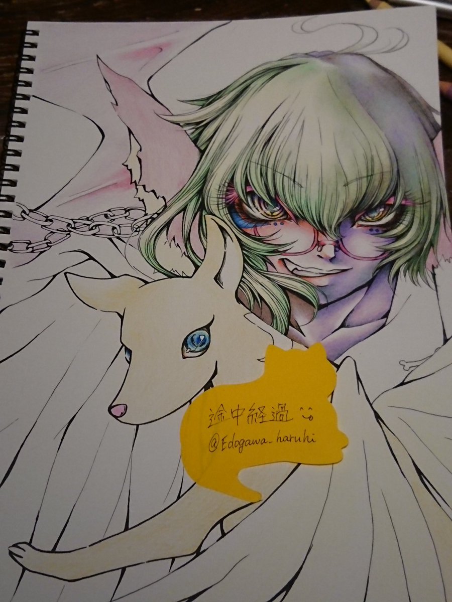たまには模写な途中うさぎさんを添えて。毛並みが上手く描けない😵 本を読んだら眠りにつきます。 おやすみなさい(。-ω-)zzz 皆様もよい夢を🌙 #色鉛筆 #模写途中