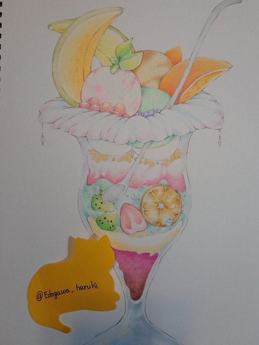 39 190 パッフェ食べたいけど手元になかったので描いて欲を消化する戦法で凌ぎましたぁ🤤🍨💕(凌げてる気は全くしないw) #色鉛筆イラスト #食べたいもの 23/05/28 20:36