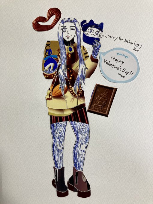 バレンタインデーコラージュ完成しました🍫 (大遅刻!) 今回はチョコのパッケージ5種類(+そのチョコを入れているケース)を使いました。 なつめさんちの動画を参考に作らせていただきました。ありがとうございました! #バレンタインデー #イラスト #illustration #なつめさんちの美術室