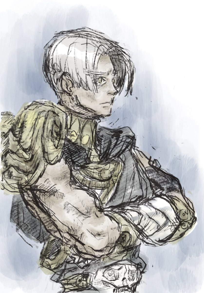 少年時代王子の妄想らくがき。 器量が母上似とオルフェウスに言われていたから、第二次性徴期の寸前とかすごく似てたかもしれない…そして王妃を思い出したり、今の王子がオリュンポスに見つかったら一目でバレて一大事、とか複雑な想いの父上に辛くあたられたかもしれない…