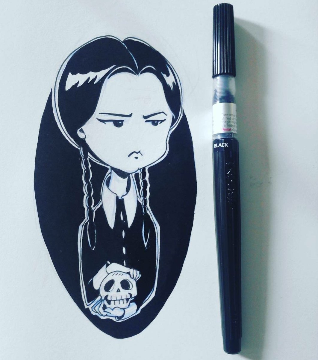 0 1 #wednesdayaddams #inktober #moleskine 21/11/02 23:07