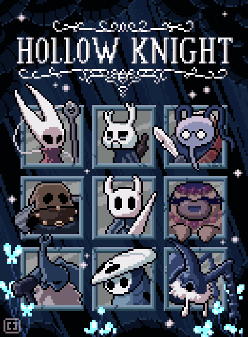 Petite gallerie pour un grand jeu ! Quel plaisir de se replonger dans cet univers le temps d'un Fanart. Et participation au @Pix2getherEvent au passage en trichant un peu sur les contraintes ;) #pixelart #fanart #HollowKnight #hollowknightfanart poke @TeamCherryGames