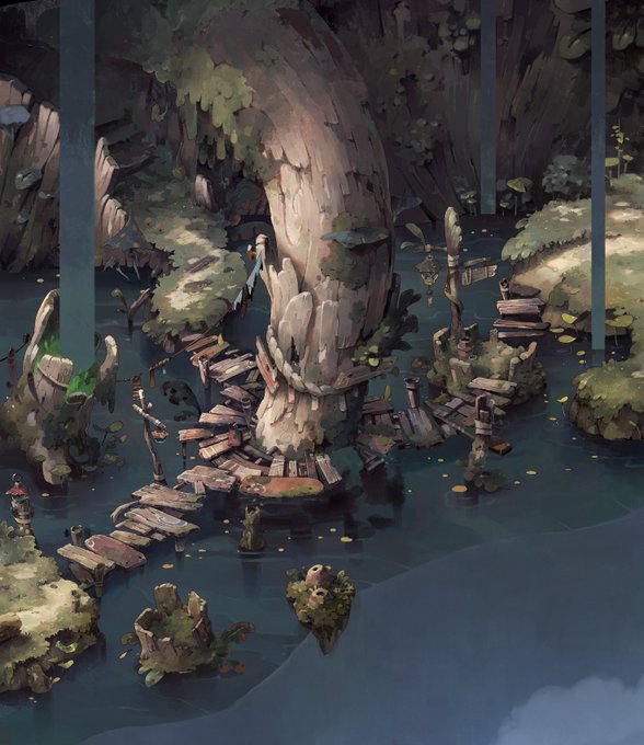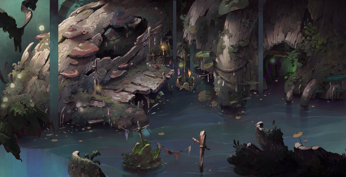Hello #PortfolioDay 🐸It's nice to see twitter flooded with all those beautiful handmade pictures! I'm Boskoop I like painting environments, especially for my indie game project called Brood