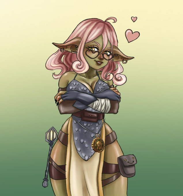 I caved in and made a gobo.🥹 This is Runviya DummyThikk, cleric of Tymora🪙 Her glasses are stolen from a random man and hit with the hammer in the middle, to become hearts. #digitalart #DnDcharacter #dndartist #Goblin #artist #ArtistOnTwitter #OC #fantasyart #art
