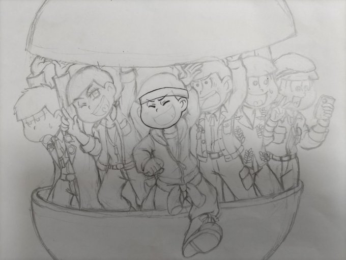 #松野家6つ子生誕祭2023 お誕生日おめでとうございます!大遅刻ですが、今年もお祝いイラストを描きました~✨ ヒピポが面白かったので、今年はヒピポ仕様にしてみました♪ FC4期決定もおめでとう!!!!!!6つ子大好き~💕