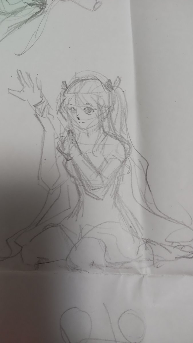 おはようございます。今描いてるイラストです(•‿•) 顔のバランスの取り方の動画をみてマネしてみました。どうでしょう? #アイビス #ibispaint #イラスト #下絵 #百均スタイラスペン