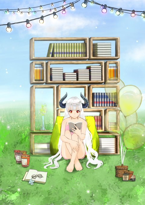 №275 読書 - ibisPaint ibispaint.com/art/735604045/ #ibispaint ←作画動画です。イメージは森で読書する魔族の女の子です。気づいたら朝、的な☺️ 素材縛りです。 #アイビス #ibispaint #素材縛り #イラスト #illustration