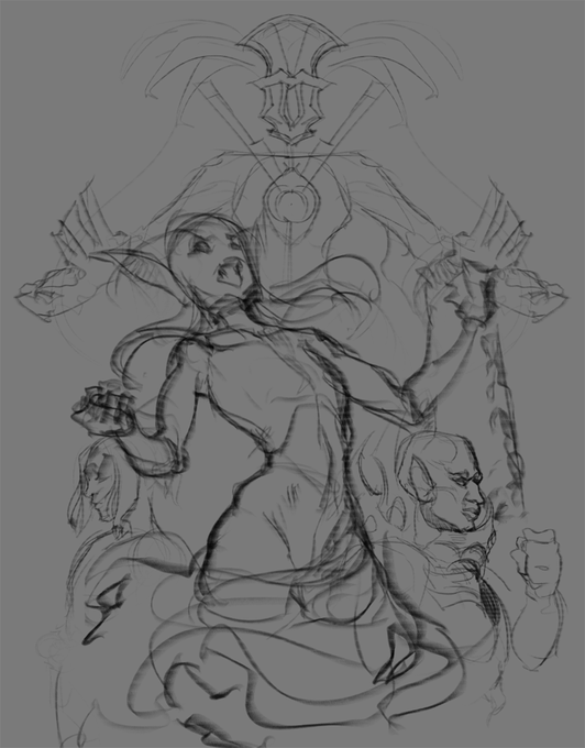 Here's the sketch vs final #sketchvsfinal for the key art for Cards & Castle 2 I had the pleasure to work on!