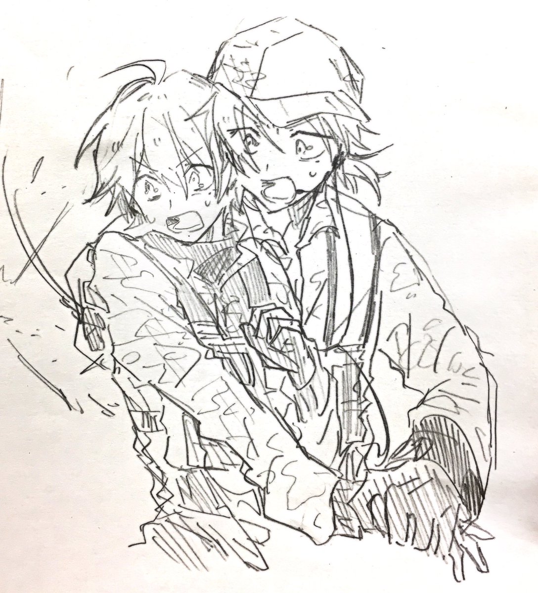 24 85 勢い2️⃣3️⃣らくがき(イベスト未読) 早く何かハプニングなどに遭えばいいなという思いを込めてかいた💥 21/11/10 20:13