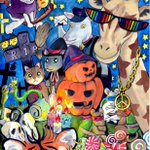 【ハロウィンイラスト(製作中)】:水彩で動物を描くときは、いつも一番最後に瞳の色を入れます。(瞳を描くときは「魂注入!」みたいな、儀式的な気分になる😁) #制作過程の写真だけで興味を持ってくれる方へ届け #イラスト #水彩イラスト