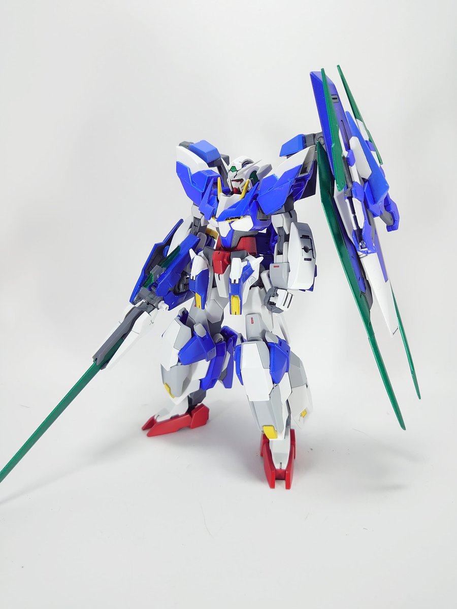 有言実行! 完成しました。オリジナル太陽炉機体 名前はまだ決めてないですが……… 来月から武装系を製作しますので100%完成は来月になります ※武器はアメイジングエクシアから借りてます #ガンプラ