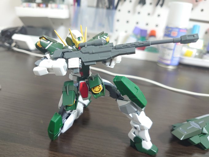 天気が悪いのでデュナメスの方を進行 リペアⅢに近づけた形状を目指します #ガンプラ