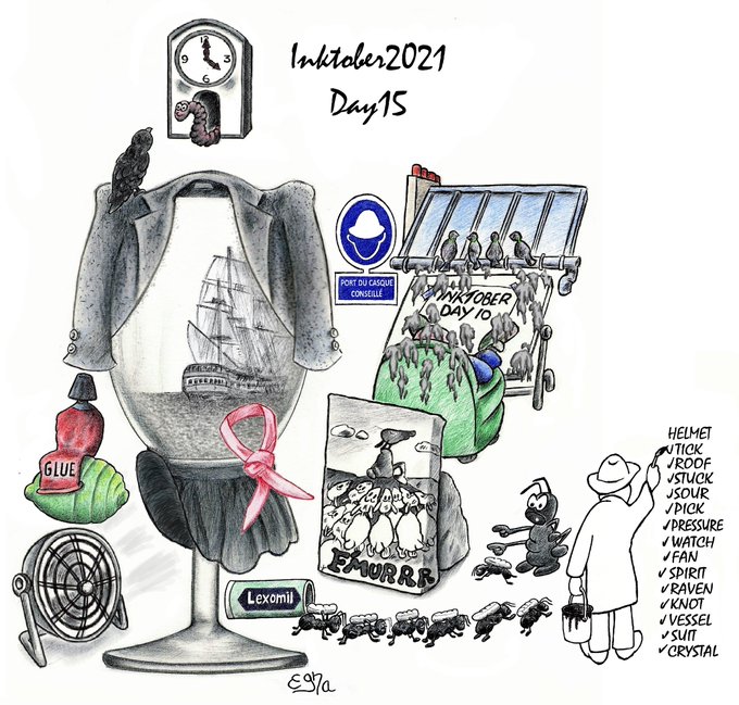Mercredi on pose le toit avec ses occupants 😉✏️ #Inktober #inktober2021 #inktober2021day13 #inktoberchallenge #inktoberchallenge2021 #dessin #stylobic
