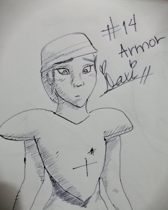 DÍA 14: ARMADURA No me salió xd parece que va a jugar tochito. #InkTober #achurado #Personajes #DayFourteen #Armor #Armadura #GirlPower