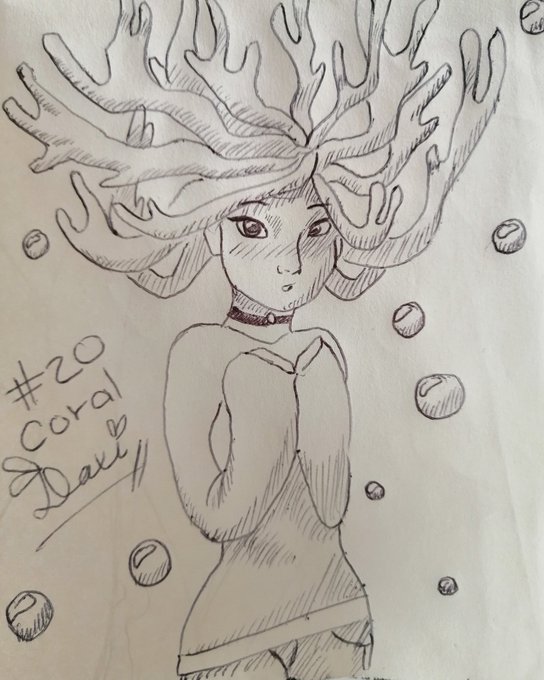 Día 20: Coral Ahora si a tiempo uwu 💕 #InkTober #achurado #Personajes #Coral #CoralGirl #ChicaCoral #Burbujas #Bubbles #DayTwenty