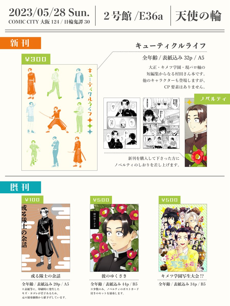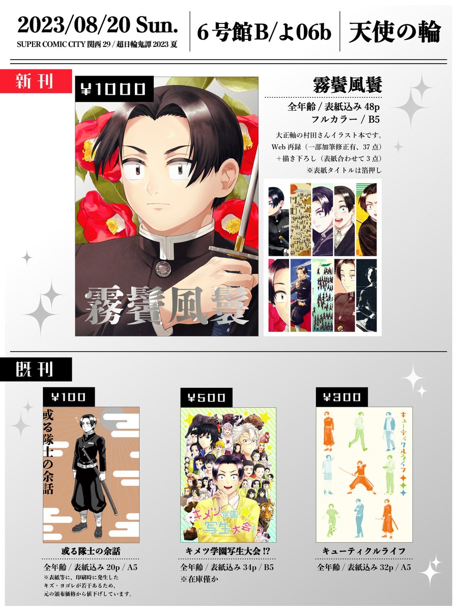 【お品書き】 8/20(日) SUPER COMIC CITY 関西 29 超日輪鬼譚 2023夏 【6号館B よ06b】天使の輪 どうぞよろしくお願いいたします!