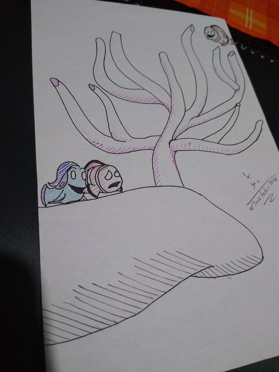 #Inktober2020 Día 20: Coral ¿Que es esto, otro fanart? No, apenas un cameo parte 2 Los corales no son animales que me guste dibujar realmente, siento que no los entiendo