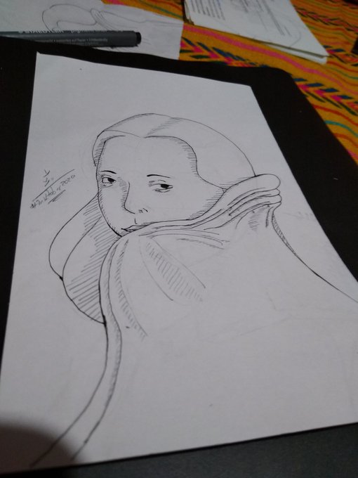 #inktober2020 Día 26: Hide El día de hoy me inspiré en mi esposa escondiendo su bella sonrisa 😁😁 aunque no sé si este dibujo me le haga justicia...