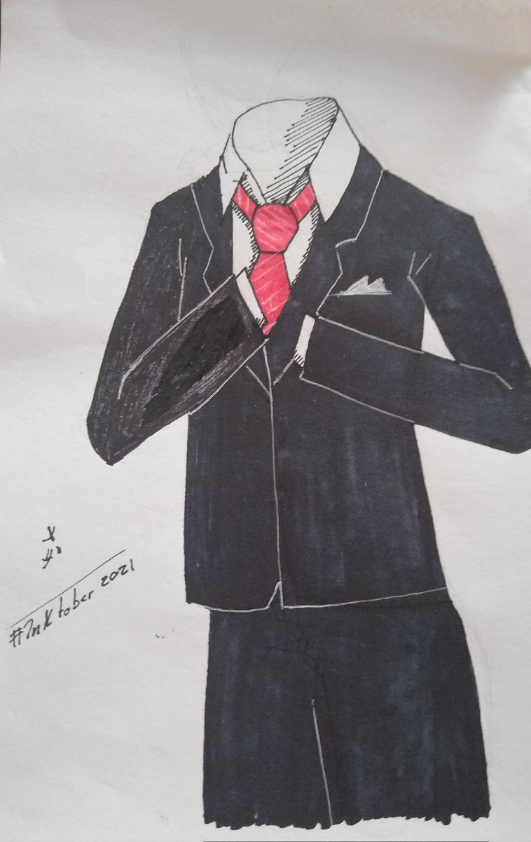 Se me acabó la tinta en el brazo derecho y ahora no puedo dejar de ver esa mancha, en fin... #inktober2021 día 2: Traje
