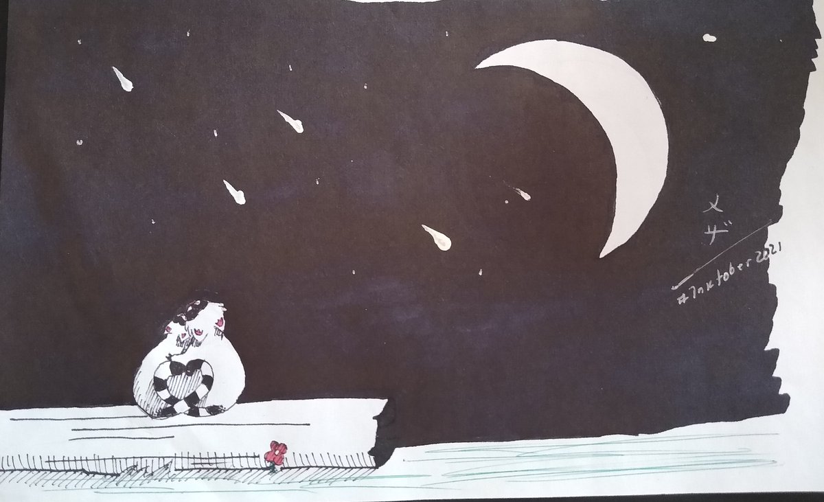 #Inktober2020 Día 10: Hope Que complicado es ilustrar una palabra tan abstracta, en fin, me gustó la locación del día 9 y la repetí, está vez de noche y con un poquito más de esfuerzo, pero solo poquito...