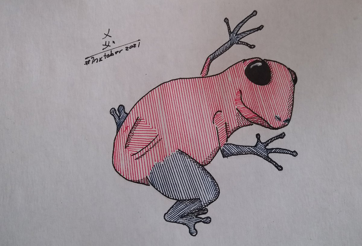 Para este día escogí a la rana venenosa espléndida de Panamá, una de las ya muchas especies declaradas extintas en años recientes (dónde la acción humana ha Sido la principal culpable) #inktober2021 día 24: Extinto