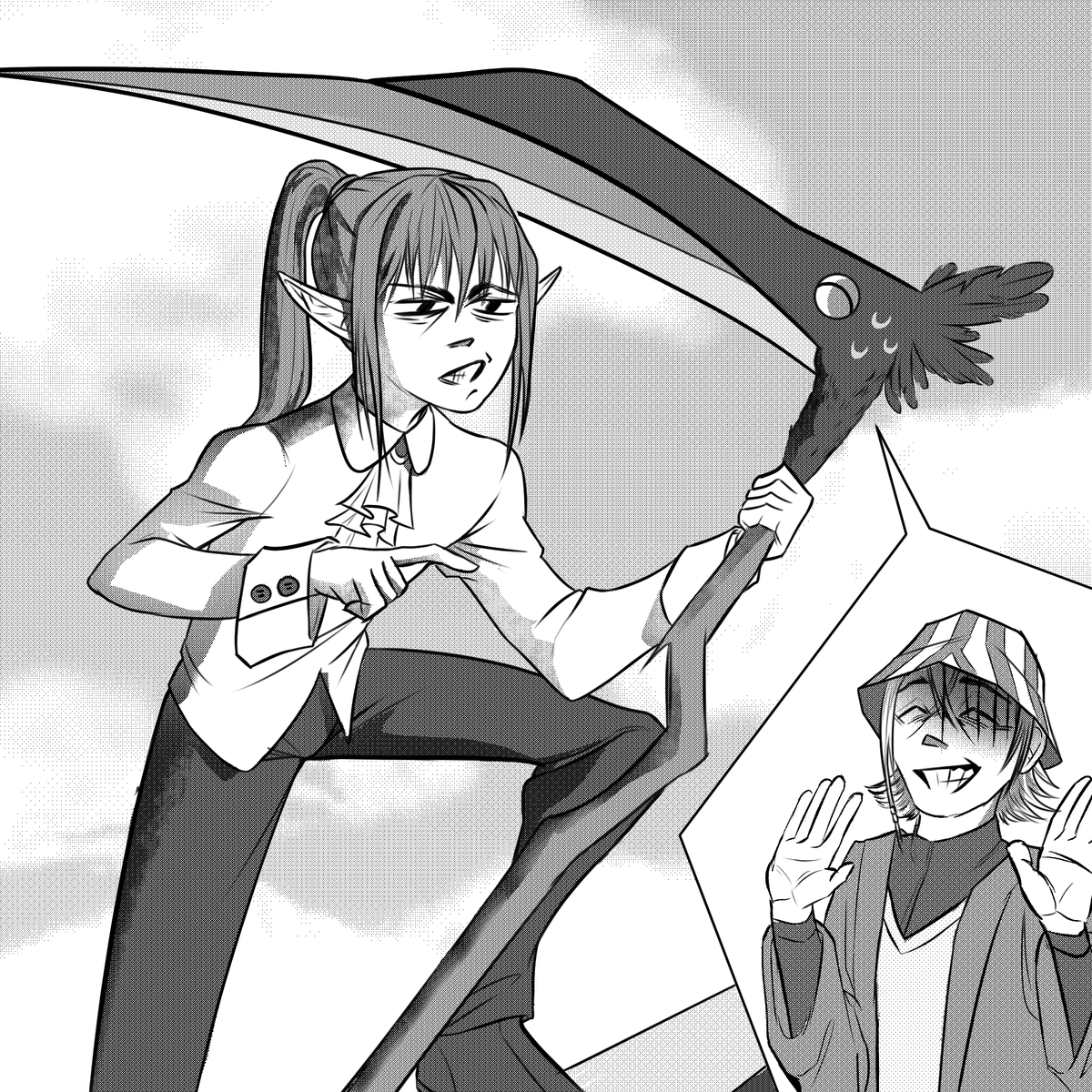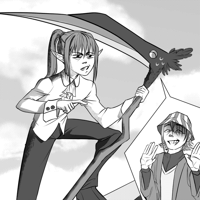 #technovember2021 - AU! + Fav duo! Soul Eater AU! Philza is a old deamon weapon which temporarily team up with promising but uncommunicative teen - Techno! To help him be more comfortable in team. #technobladefanart #philzafanart #emeraldduo