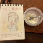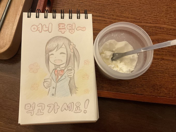 お客さんが落書きができるようにノートと色鉛筆をテーブルに置いたので、プリンを食べながら色々な落書きを見て、私もプリンを広報する落書きを描いた。 「ヨニプリン食べて行ってください!」 でも今見たら店の名前を間違って書いた。「ヨニ」じゃなくて「ヨリ」 #ぼっち生活 twitter.com/EinsteinJohn6/…