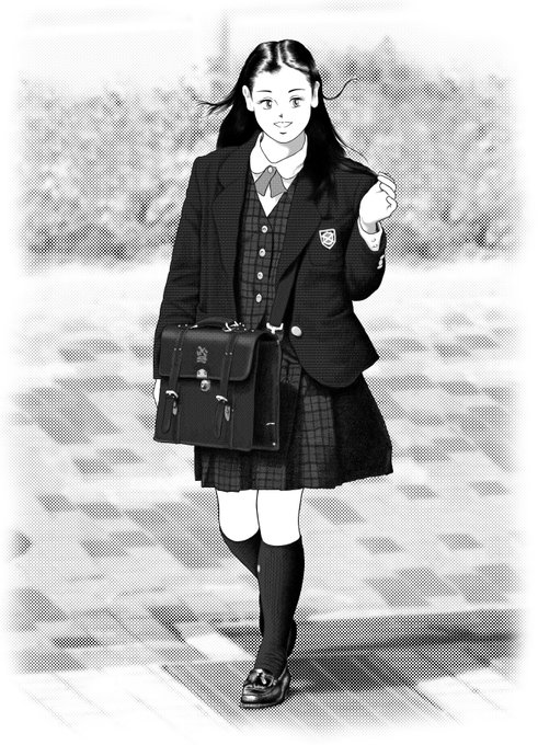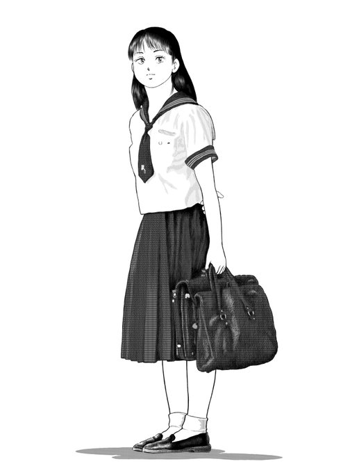 2 6 照曜館中学校(北九州市小倉北区)の旧冬服。現在は東筑紫学園高校照曜館コースと同型のセーラー服。半分以上ペンと墨汁で描いていながら30年近く放置していた原稿をスキャンしてペンタブで仕上げた最新作。 #イラスト #制服 #365日の絵理歌 22/11/30 23:57
