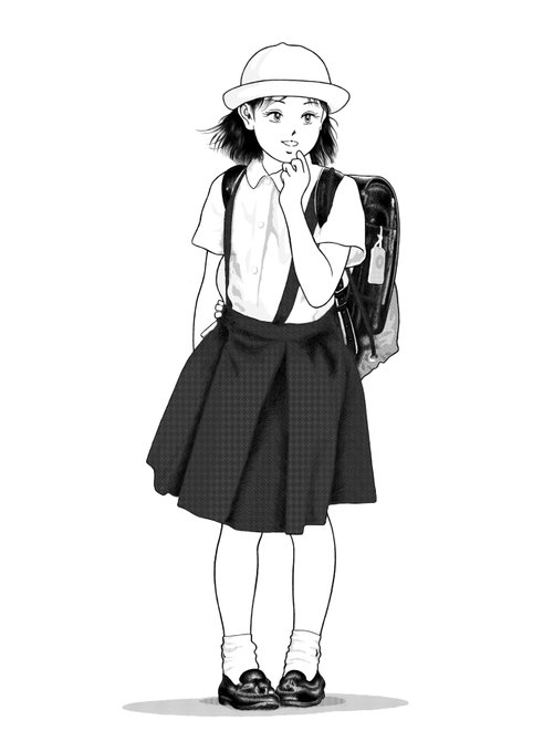 3 4 神奈川学園精華小学校(横浜市神奈川区)の夏服。既出のように冬は本格的なセーラー型で100年近い伝統があるという。夏の横浜駅で見かける白ブラウスと吊りスカートの組み合わせは他に捜真小と横浜国大付属があるが何れも帽子の違いで識別できる。 #イラスト #制服 #365日の絵理歌 23/01/22 04:11