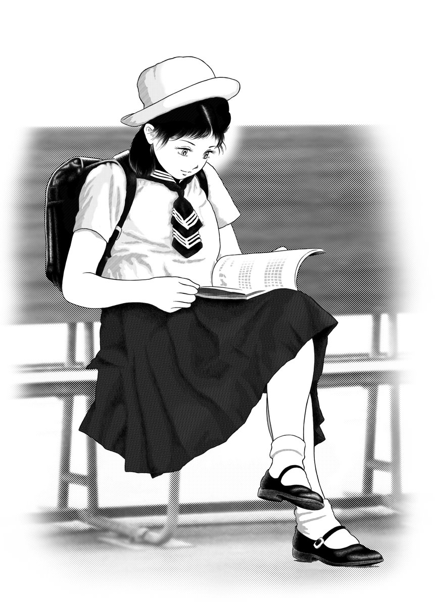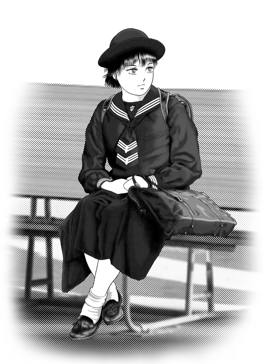 照曜館中学校(北九州市小倉北区)の旧冬服。現在は東筑紫学園高校照曜館コースと同型のセーラー服。半分以上ペンと墨汁で描いていながら30年近く放置していた原稿をスキャンしてペンタブで仕上げた最新作。 #イラスト #制服 #365日の絵理歌