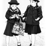15 38 湘南白百合学園小学校(藤沢市) 昭和も終りに近い藤沢駅前にて。おそらく姉妹であろう、いつも一緒の二人。これまで一貫して複数が写った写真からでも一人ひとりを別けて描くようにしてきたが、これは絵的に切り離せないと思い初の二人同時描きとなった。 #イラスト #制服 #365日の絵理歌 23/06/11 07:52