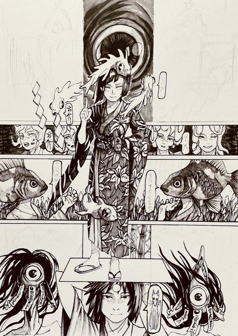 1 3 金魚と狐と○ #ペン画 #イラスト 23/07/02 11:56
