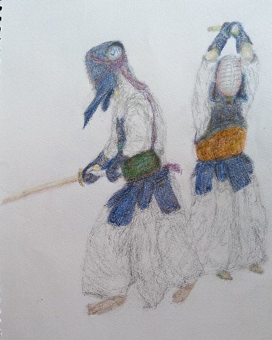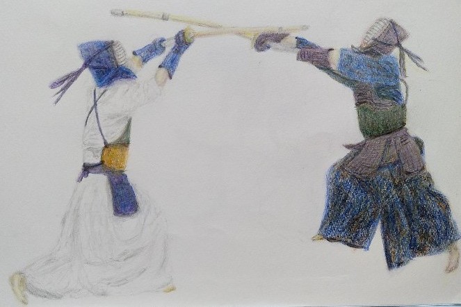 0 12 24枚目(2020年2月上旬) 色鉛筆画の2枚目です。 前回に引き続き、黒と青の2色でかきました。 (面に少し赤色使ってますが・・) 色の感覚がつかめてきて、カラーの絵をかいてみようという気持ちに、一歩近づきました。 #剣道 #Kendo #色鉛筆画 20/07/23 07:34