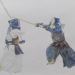 25枚目(2020年2月上旬) 色鉛筆画の3枚目です。 今回は、黒と青と赤の3色でかきました。 剣道衣、袴が赤色はさすがに違和感ありすぎました。 #剣道 #Kendo #色鉛筆画