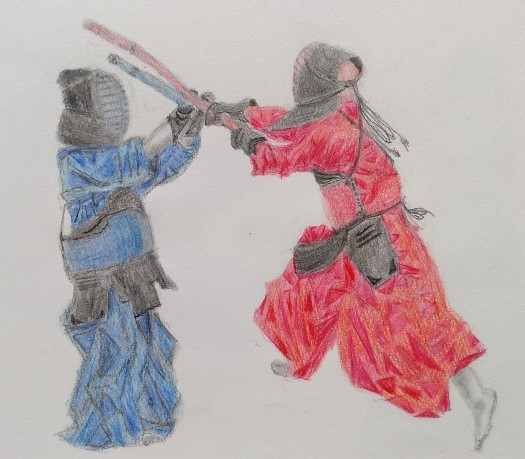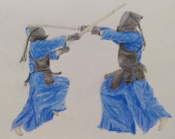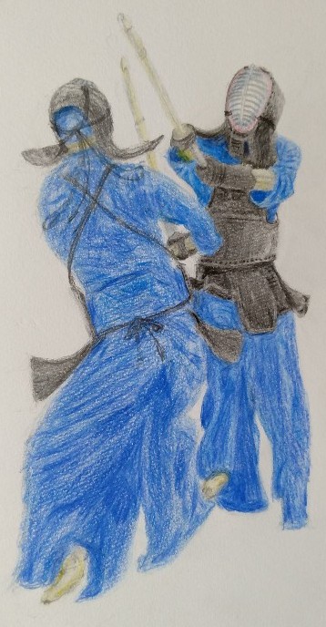 24枚目(2020年2月上旬) 色鉛筆画の2枚目です。 前回に引き続き、黒と青の2色でかきました。 (面に少し赤色使ってますが・・) 色の感覚がつかめてきて、カラーの絵をかいてみようという気持ちに、一歩近づきました。 #剣道 #Kendo #色鉛筆画