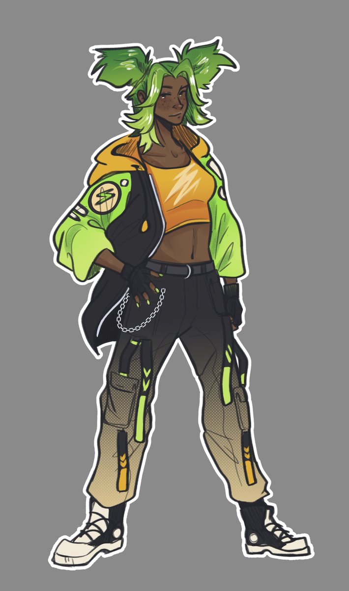 Fullbody V. 01- I may do it in future differently keep that in mind. BUT GOD, i went literally overboard with this design,goin with warm/cold combo making it futuristic yet artistic way as well as keeping the African wild dogs aspects.. #Ekko #AnimaSquad #FanConcept twitter.com/Eko0410/status…