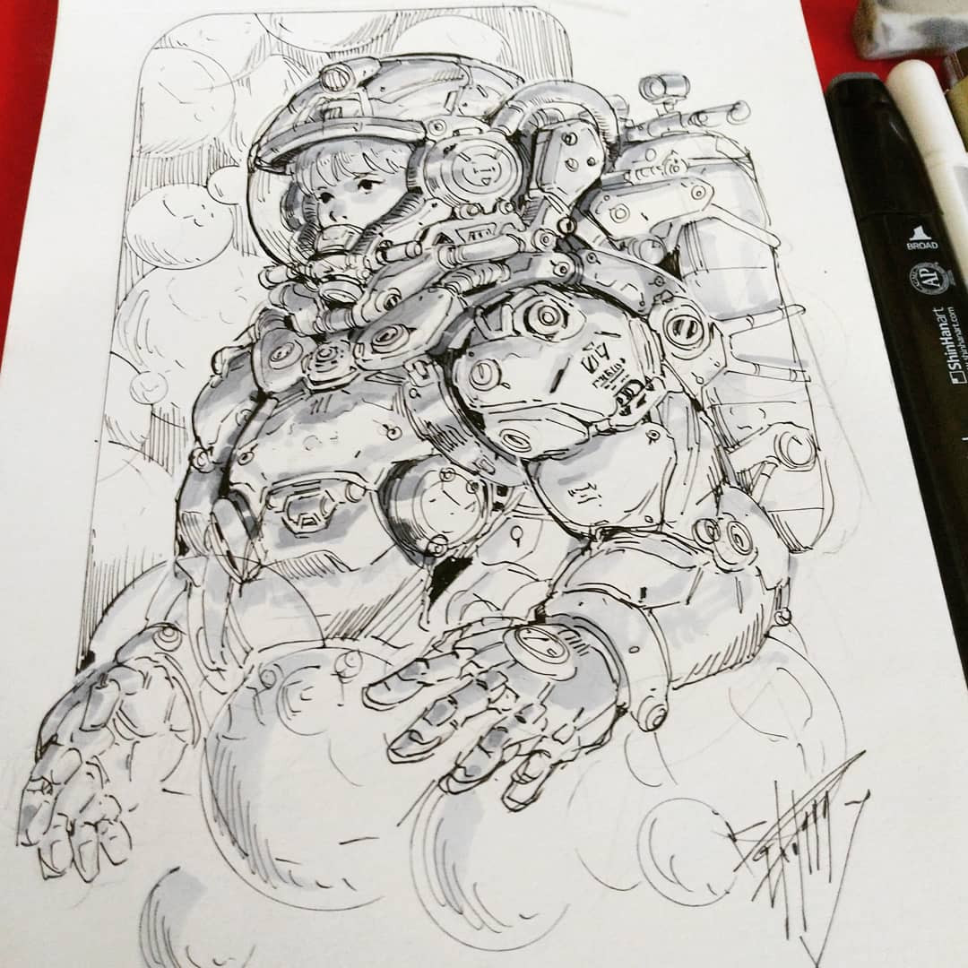 #inktober2020 no.1 Or #mechtober I suppose . -was kinda hesitant if I'd be doing it this year or not, but oh well, a little push at times isnt bad at all