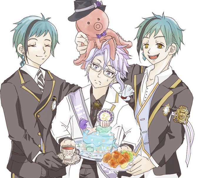 アカウント分ける前に投稿してたイラストの再投稿④アズールバースデーイラスト。ここまで大人数描いたの初めてで、当日には当然、間に合わなかった。 #ツイステファンアート #twstファンアート #twst絵描きさんと繋がりたい #ツイステ絵描きさんと繋がりたい #アズール #フロイド #ジェイド