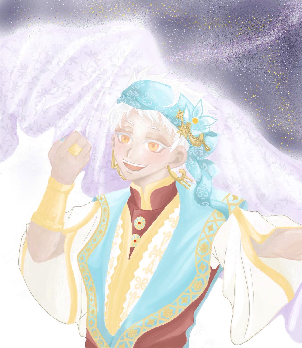 やっと完成したカリムくん。けー君とトレイ先輩の衣装の好きなとこ抜粋。 楽しかった。次はハロウィンのキャラ描きたいな。 #ツイステファンアート #twstファンアート #twst絵描きさんと繋がりたい #ツイステ絵描きさんと繋がりたい #カリム